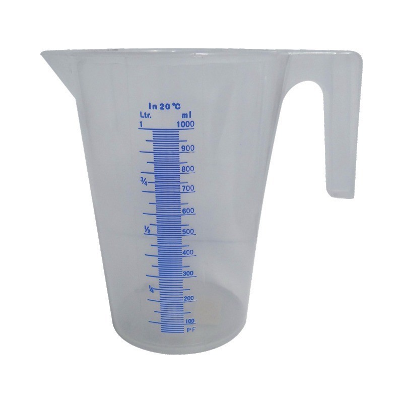 Broc plastique gradué 2L avec bec flexible, gradué en litres, avec bouchon et couvercle à visser.